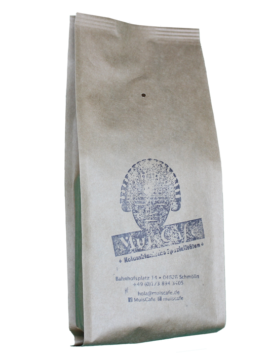 Bei dem Namen MuisCafé handelt es sich um eine Kombination zweier Begriffe. Das Wort Café repräsentiert meine Produkte. Der Begriff Muisca steht für meine historische Abstammung von den Muisca-Indianern, ähnlich den bekannten Inkas oder Azteken.